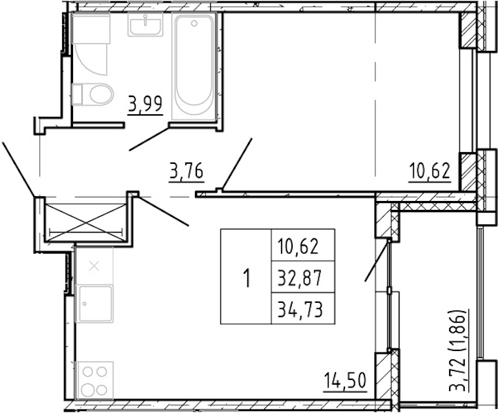 • Площадь32,87 м2