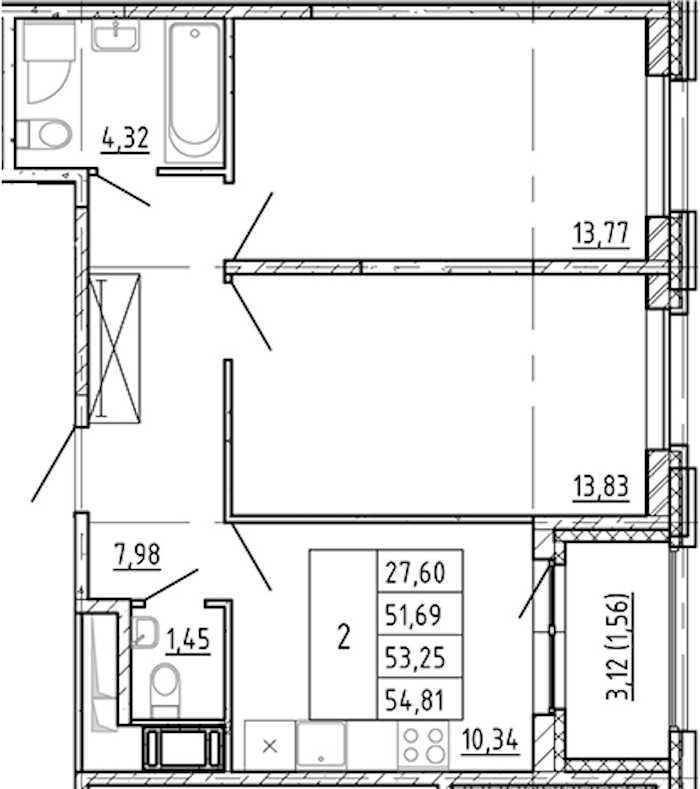 - Площадь51,69 м2