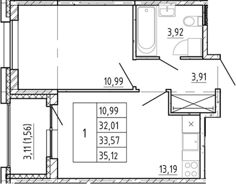 - Площадь32,01 м2