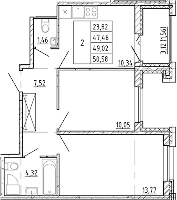 - Площадь47,46 м2