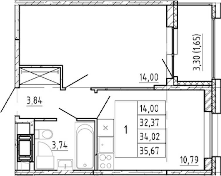 - Площадь32,37 м2