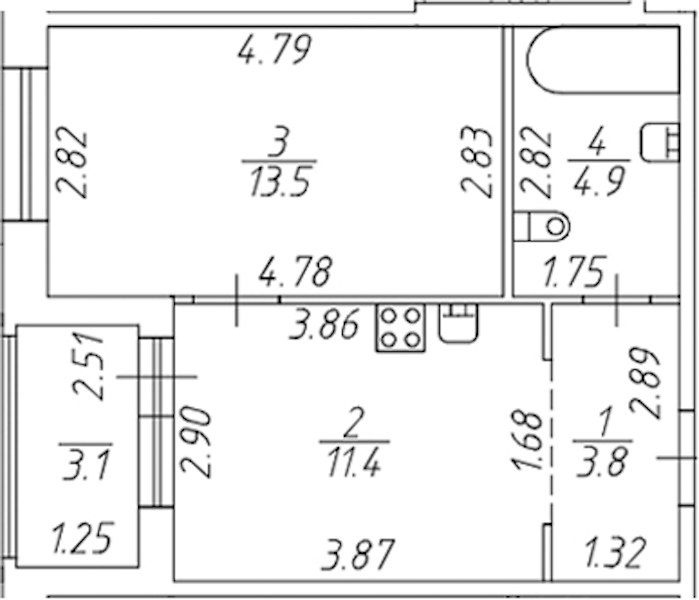 Однокомнатная квартира на 2-ом этаже 34,04 кв.м