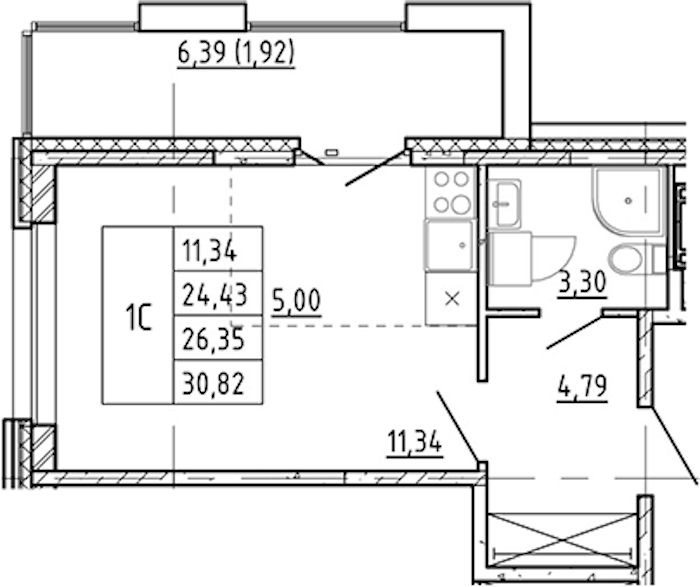 - Площадь24,43 м2