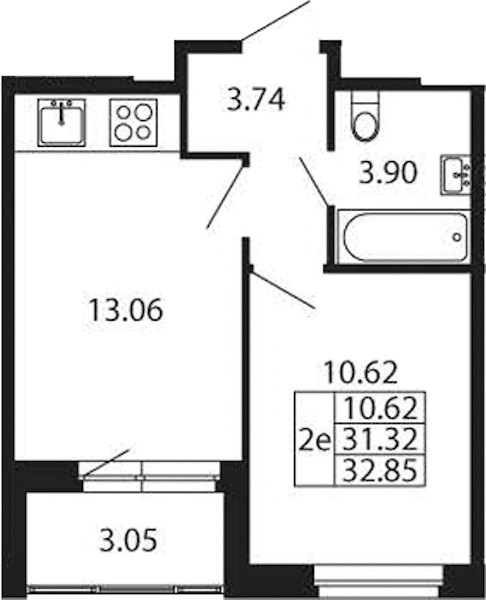 Однокомнатная квартира на 6-ом этаже 31,32 кв.м