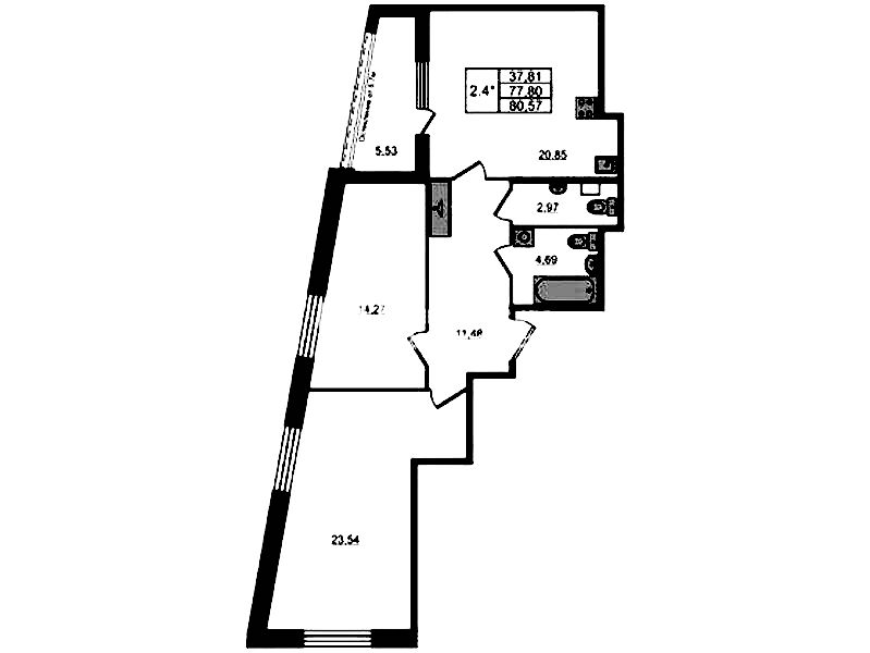 Двухкомнатная квартира на 1-ом этаже 75,3 кв.м