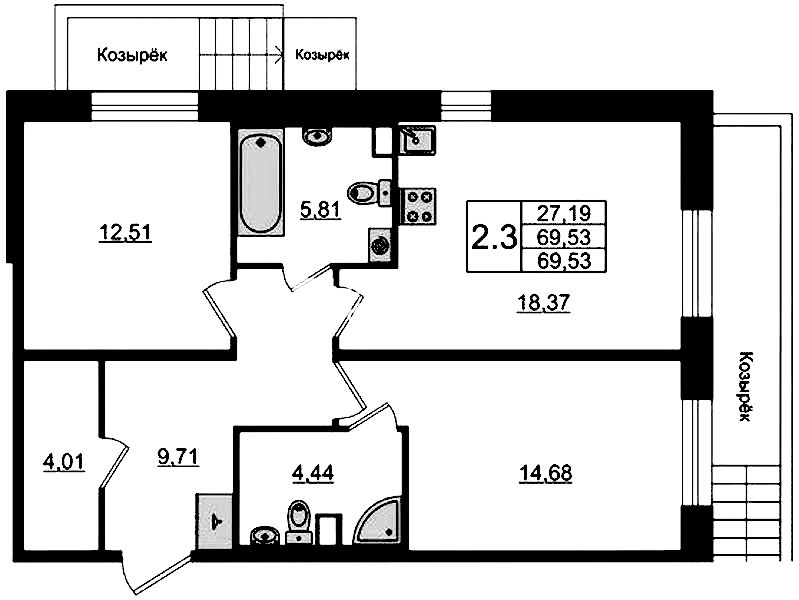 - Площадь68,2 м2