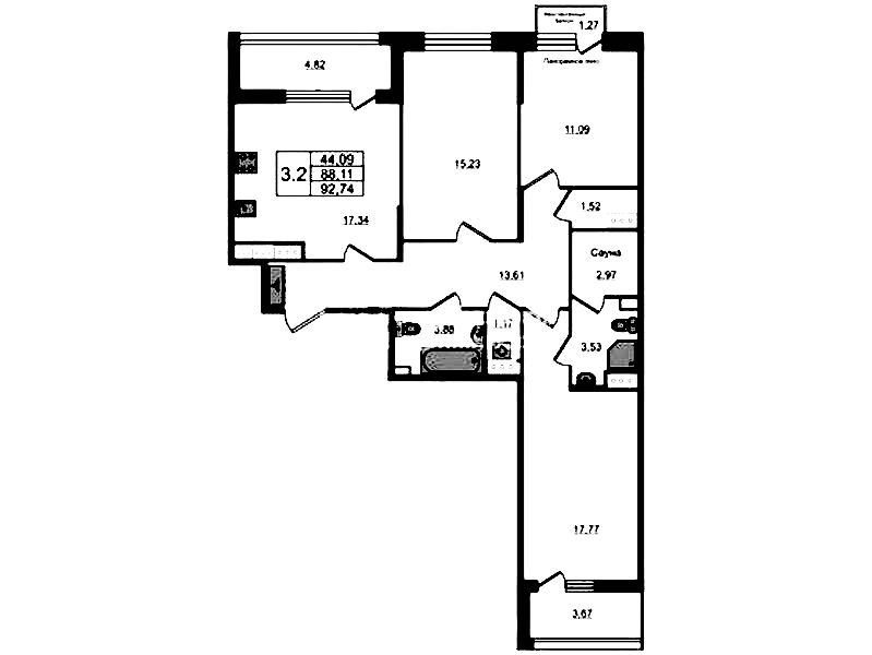 Трёхкомнатная квартира на 2-ом этаже 86,9 кв.м
