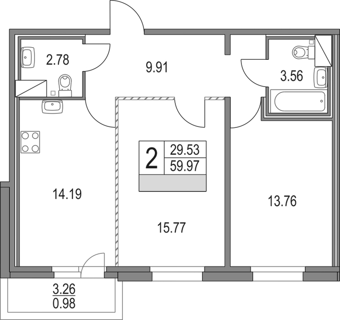 - Площадь59,97 м2