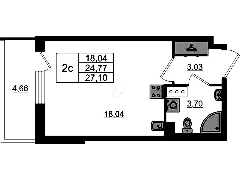 - Площадь24,77 м2