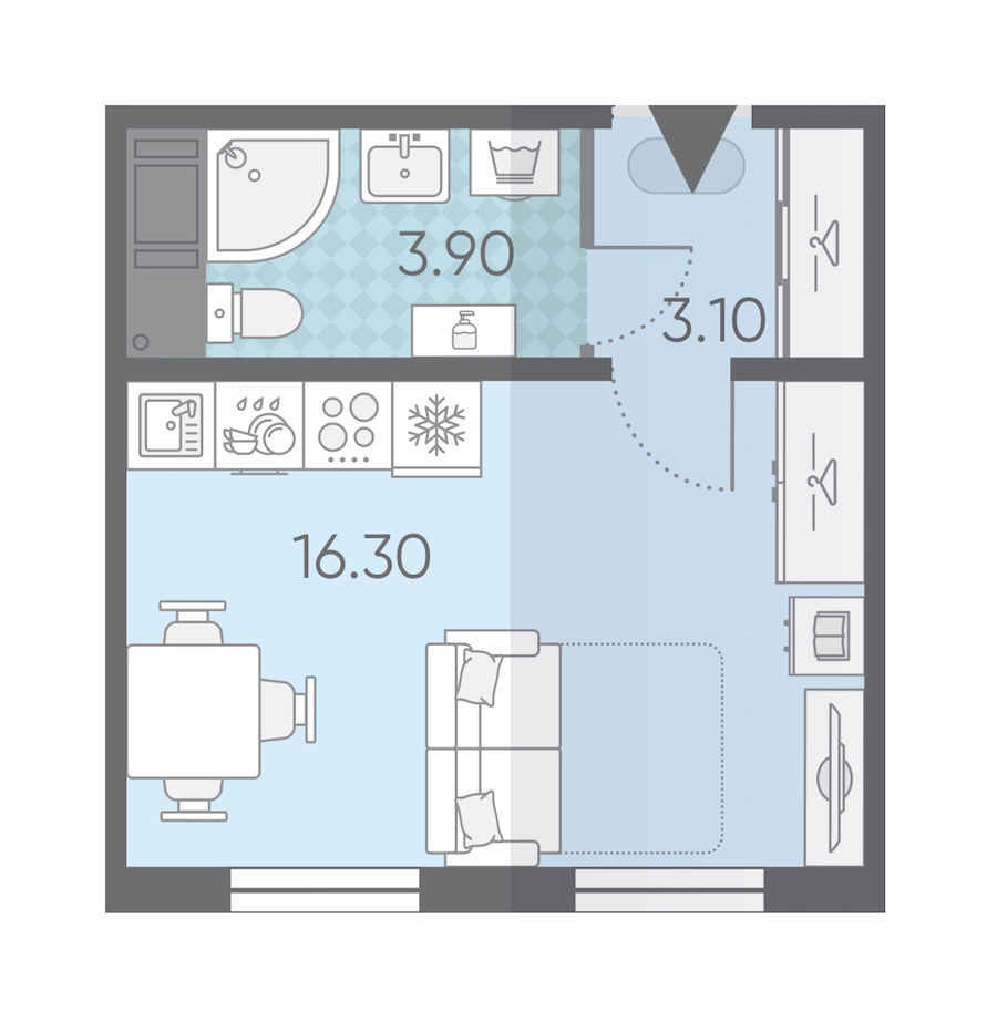 Квартира-студия на 14-ом этаже 23,3 кв.м