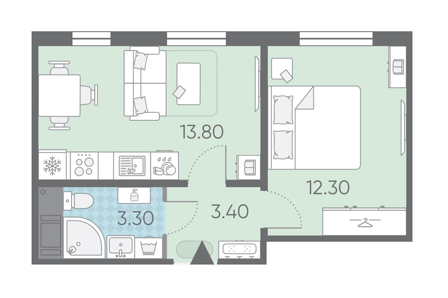 - Площадь кухни13,8 м2