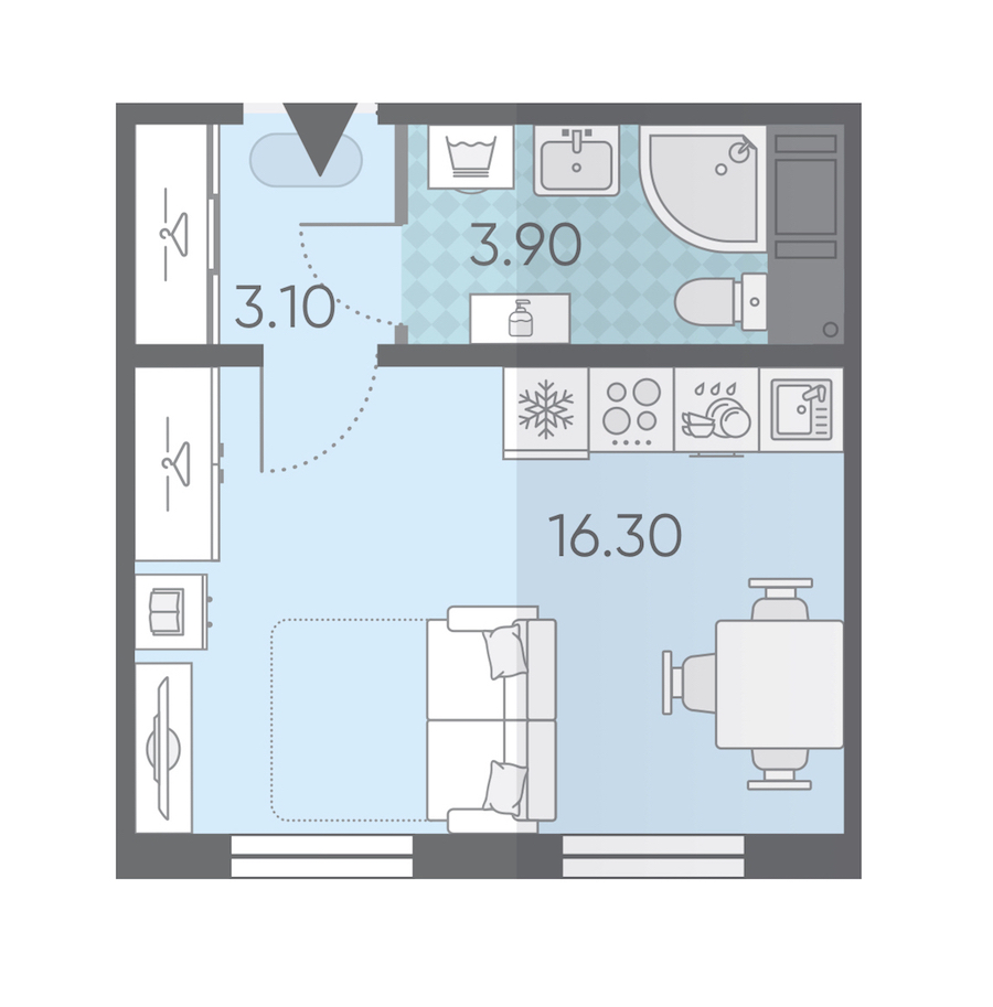 Квартира-студия на 14-ом этаже 23,3 кв.м