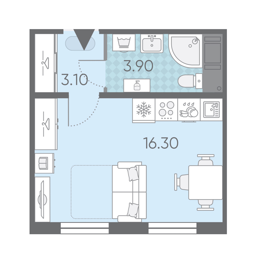 Квартира-студия на 15-ом этаже 23,3 кв.м