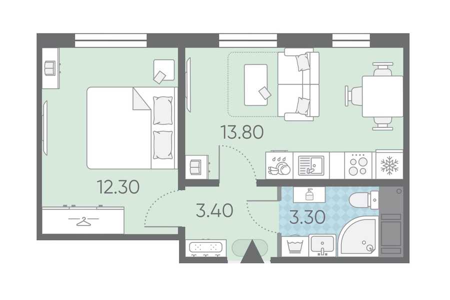 - Площадь32,8 м2