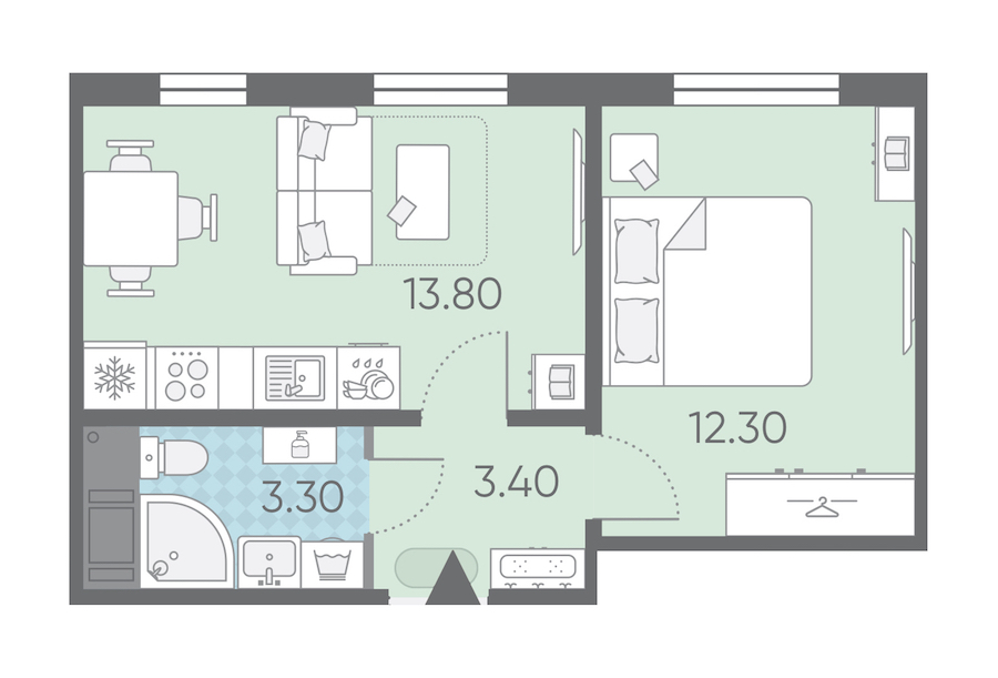 - Площадь32,8 м2