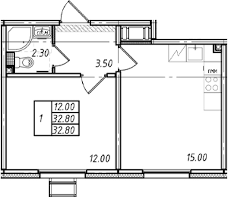 Однокомнатная квартира на 5-ом этаже 32,8 кв.м