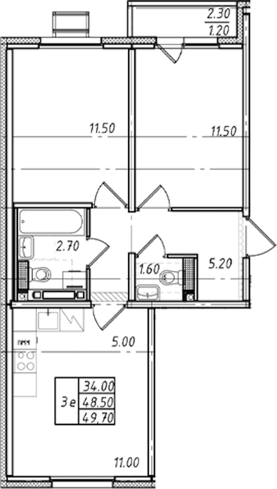 • Площадь49,7 м2