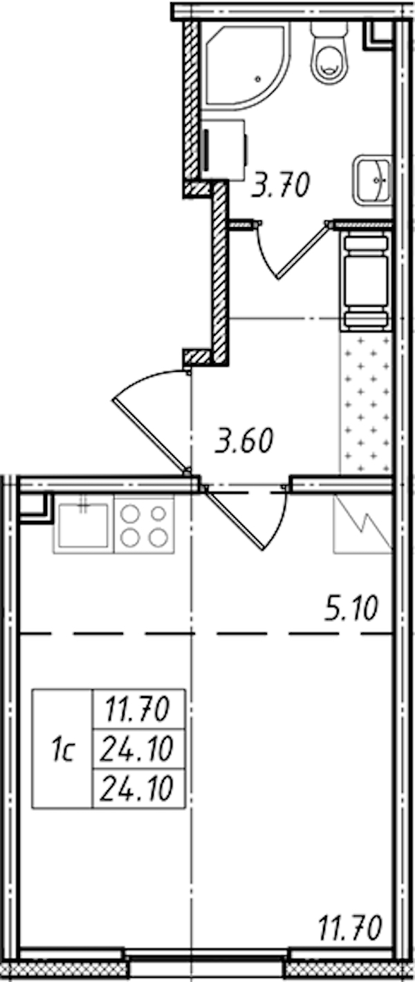 - Площадь24,1 м2