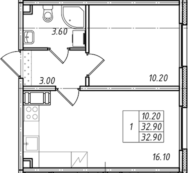 - Площадь32,9 м2