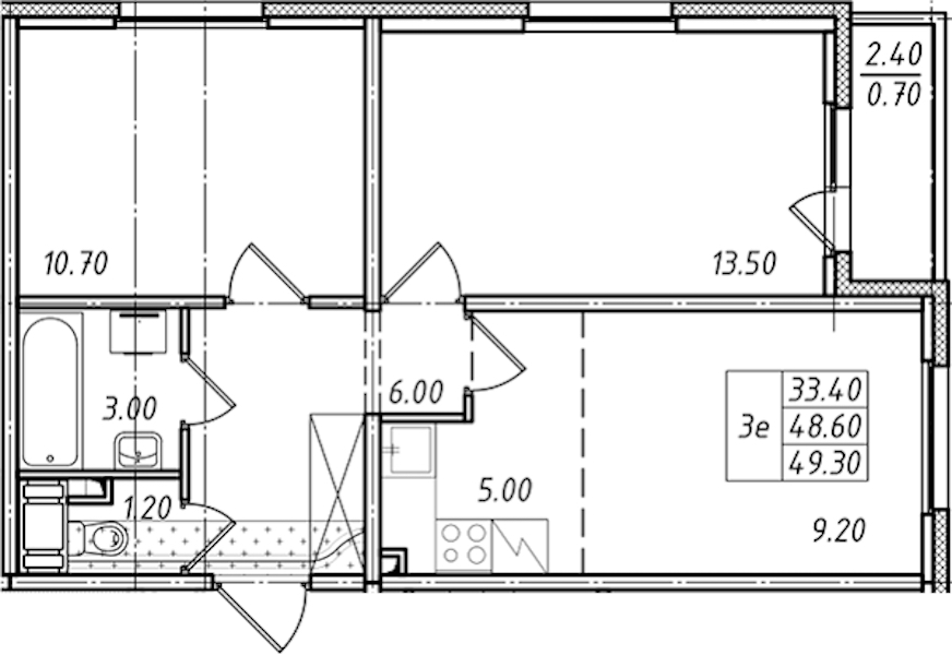 Двухкомнатная квартира на 11-ом этаже 49,3 кв.м