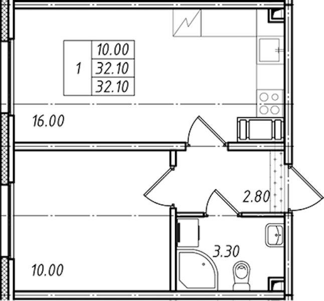 • Площадь32,1 м2
