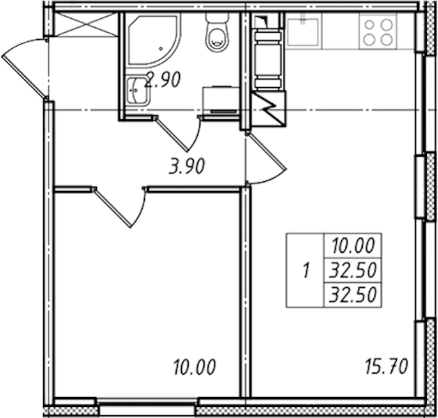 - Площадь32,5 м2