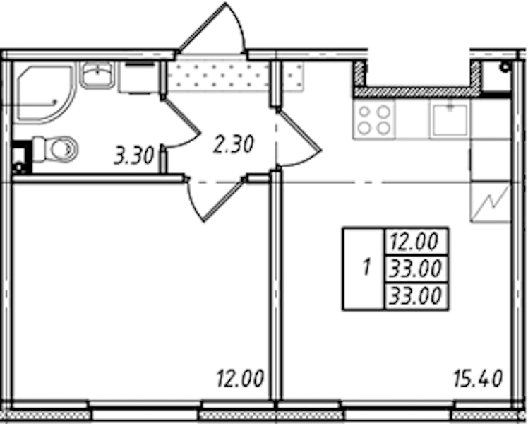 - Площадь кухни15,4 м2