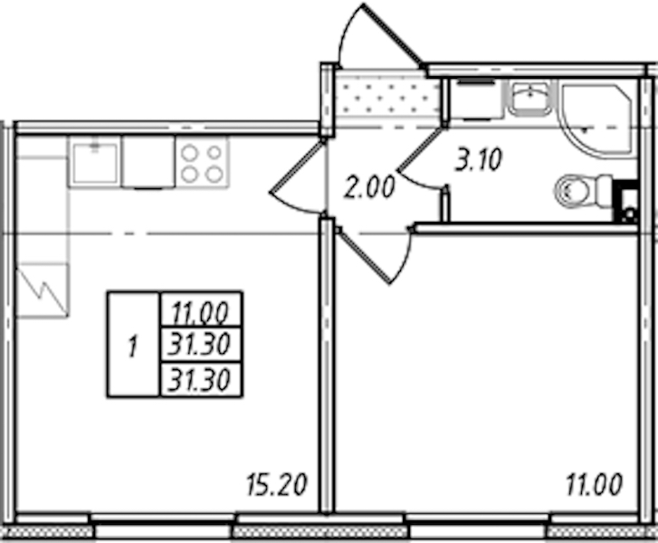 - Площадь31,3 м2