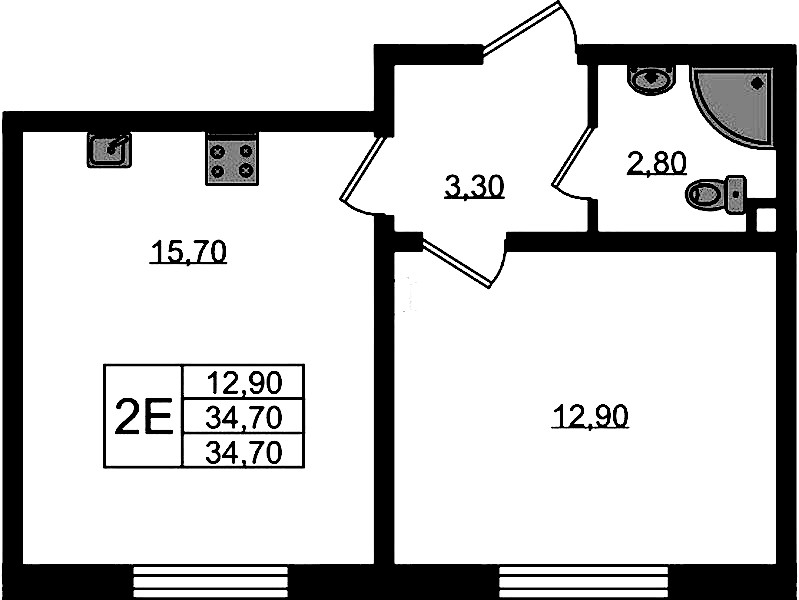 - Площадь34,7 м2