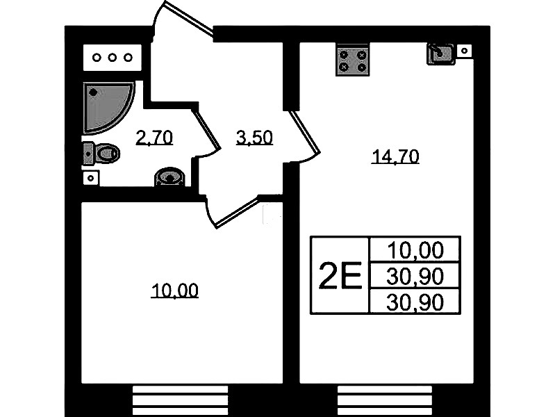 Однокомнатная квартира на 14-ом этаже 30,9 кв.м