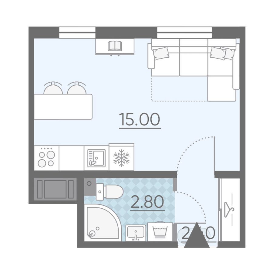 Квартира-студия на 7-ом этаже 20,2 кв.м