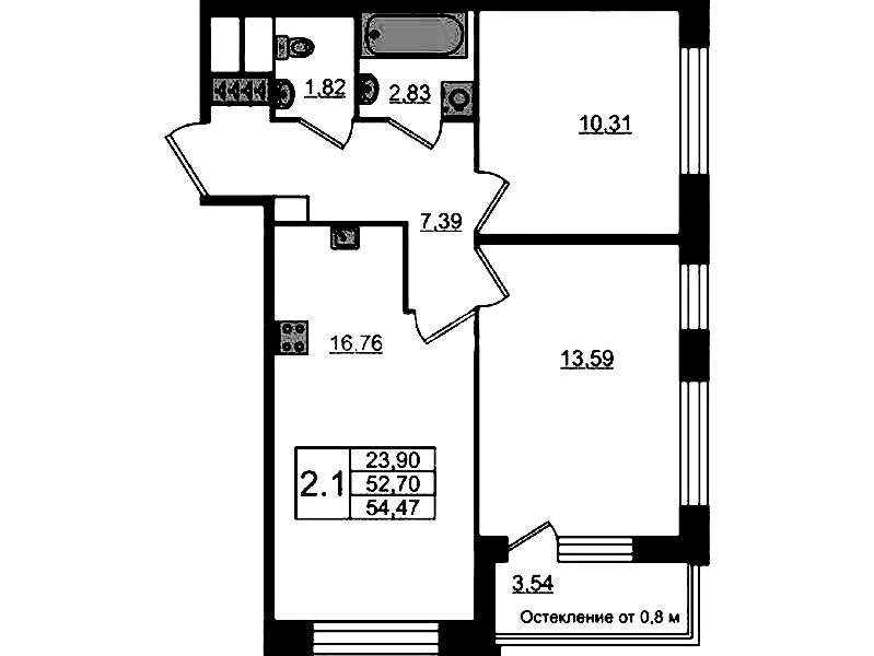 - Площадь51,7 м2