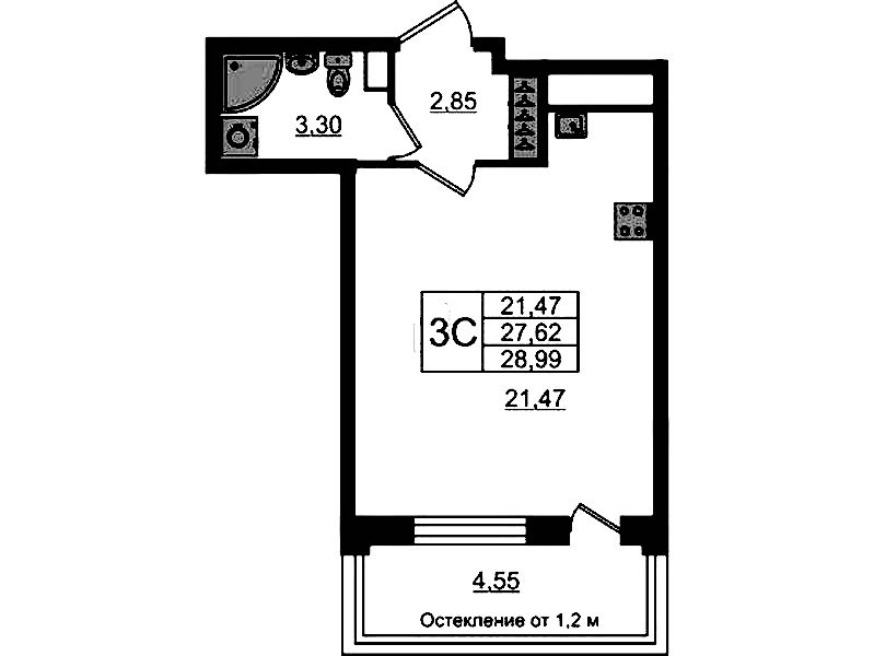 - Количество комнатСтудия