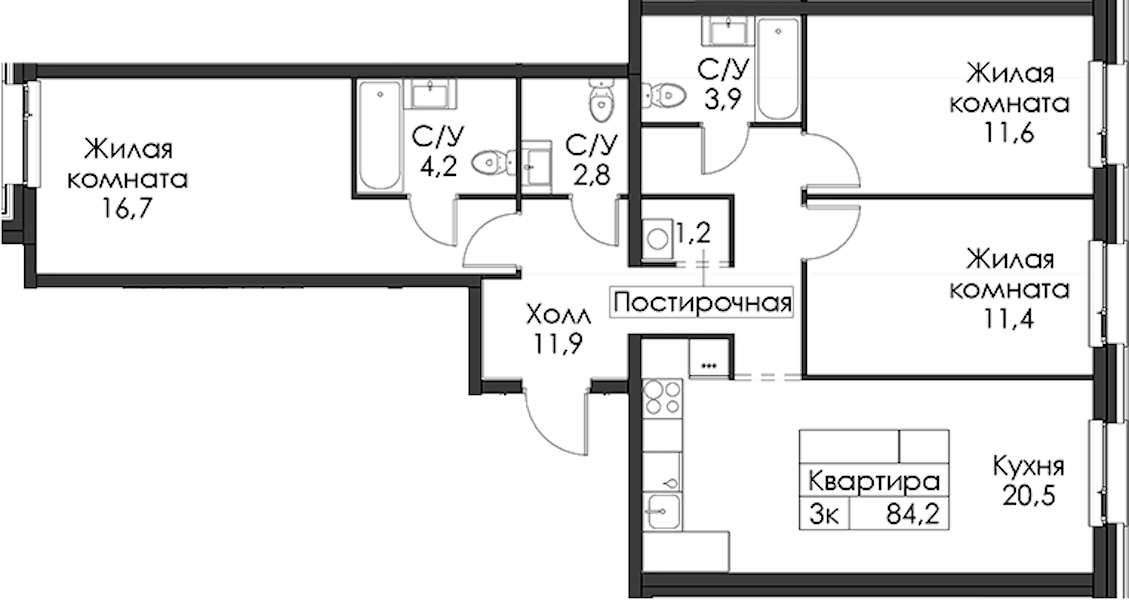 - Площадь84,2 м2