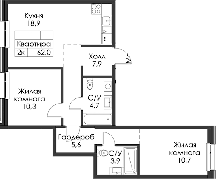 - Площадь62 м2