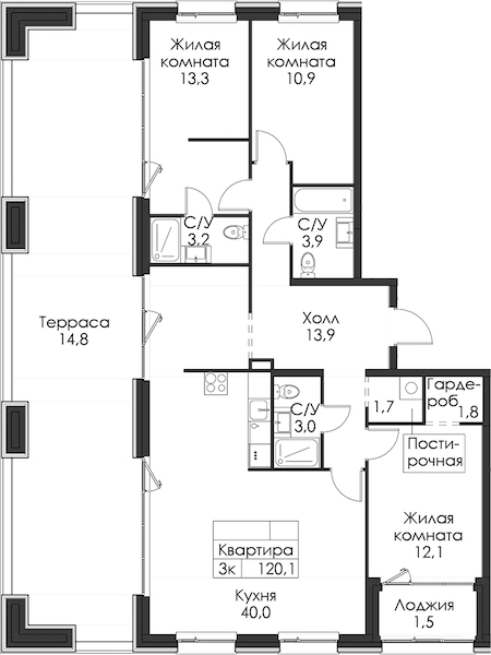 - Площадь120,1 м2