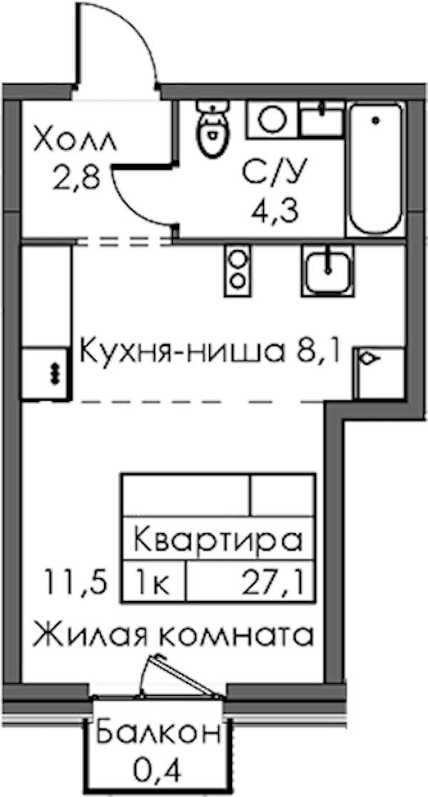 Квартира-студия на 9-ом этаже 27,1 кв.м