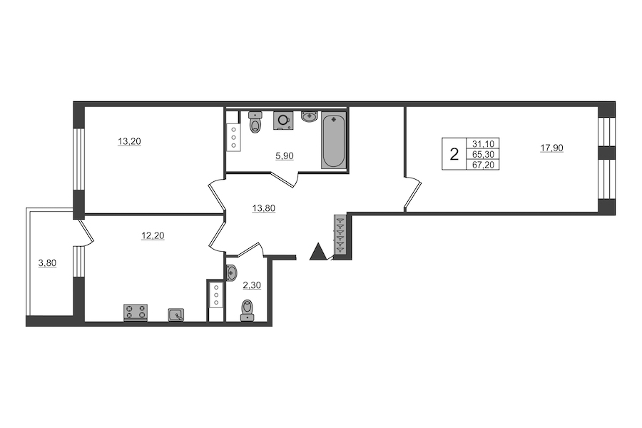 - Площадь66,7 м2