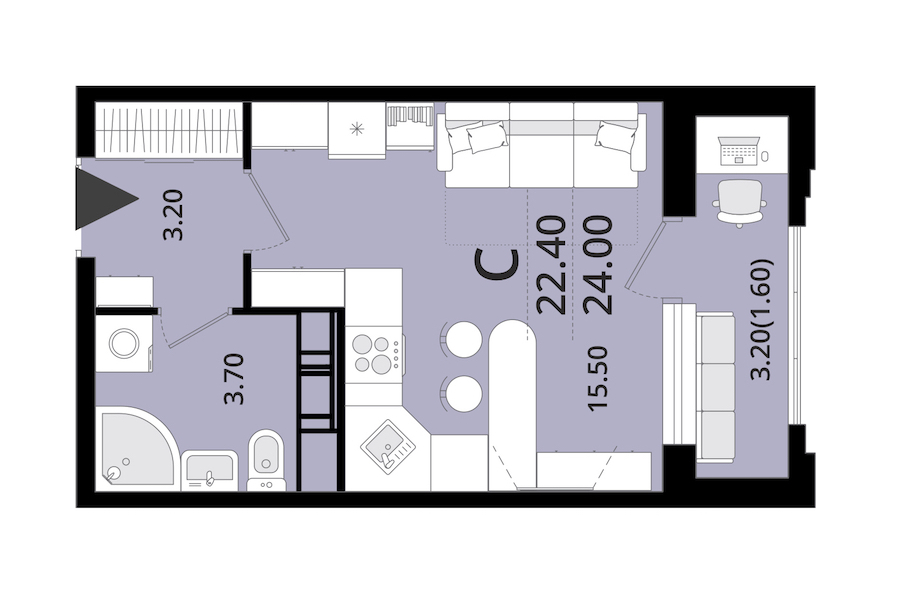 - Площадь24 м2