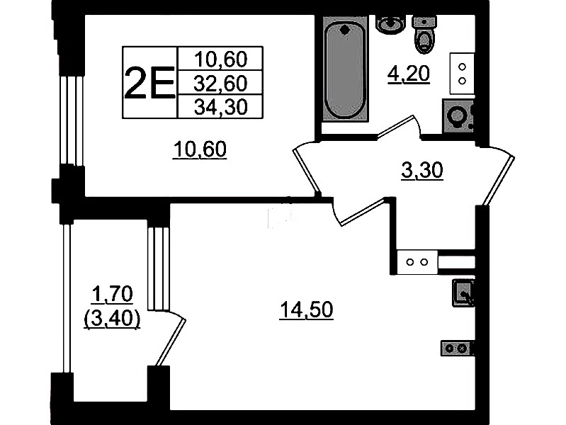 Однокомнатная квартира на 12-ом этаже 34,3 кв.м