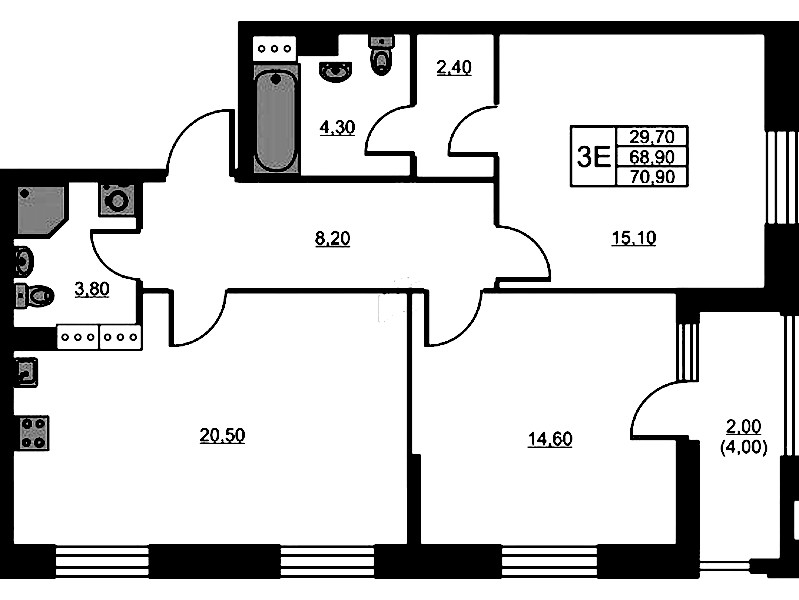 - Площадь70,9 м2