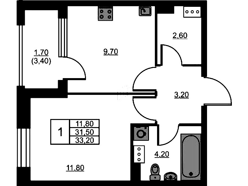 - Площадь кухни9,7 м2