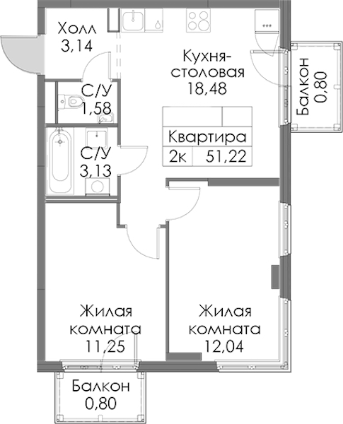 - Площадь51,22 м2