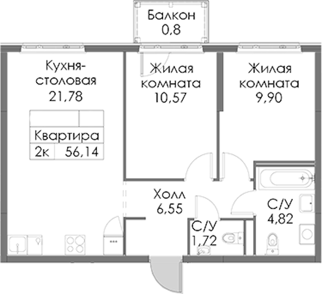 - Площадь56,14 м2
