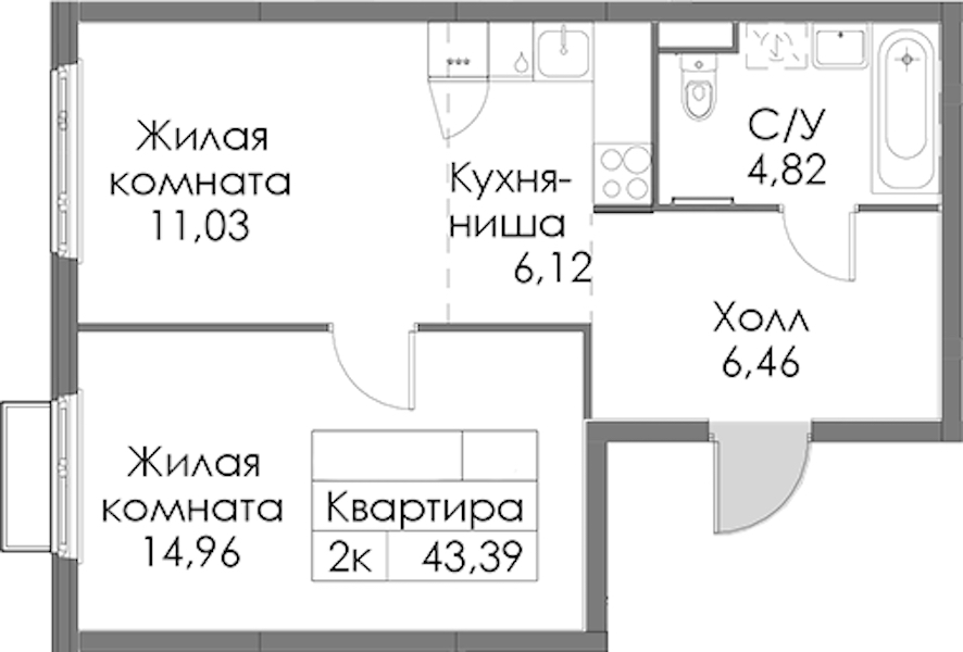 - Площадь43,39 м2