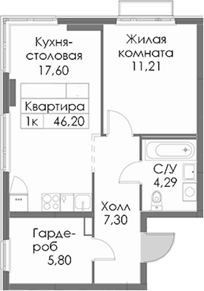 - Площадь46,2 м2