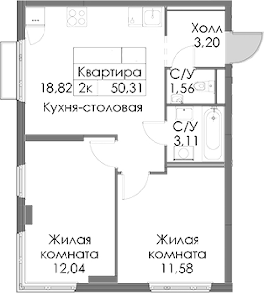 - Площадь50,31 м2