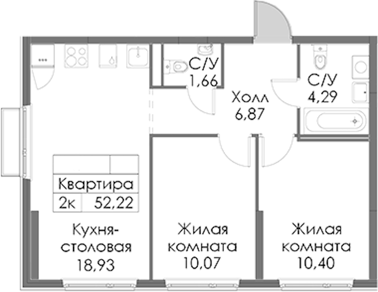 • Площадь52,22 м2