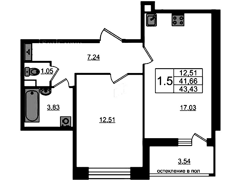 - Площадь кухни17,03 м2
