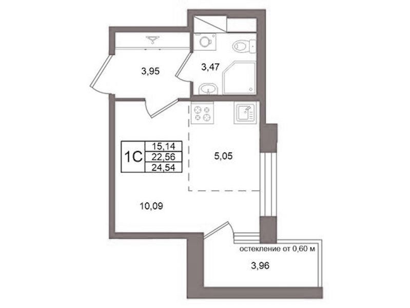 Квартира-студия на 9-ом этаже 22,56 кв.м